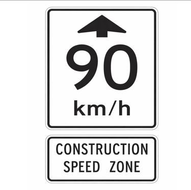 Maximum 90km/h W/ Construction Speed Zone
